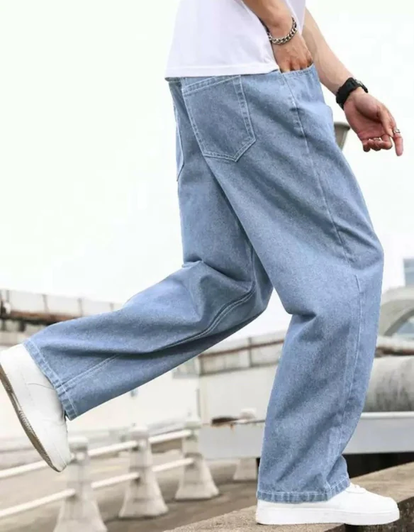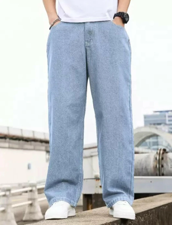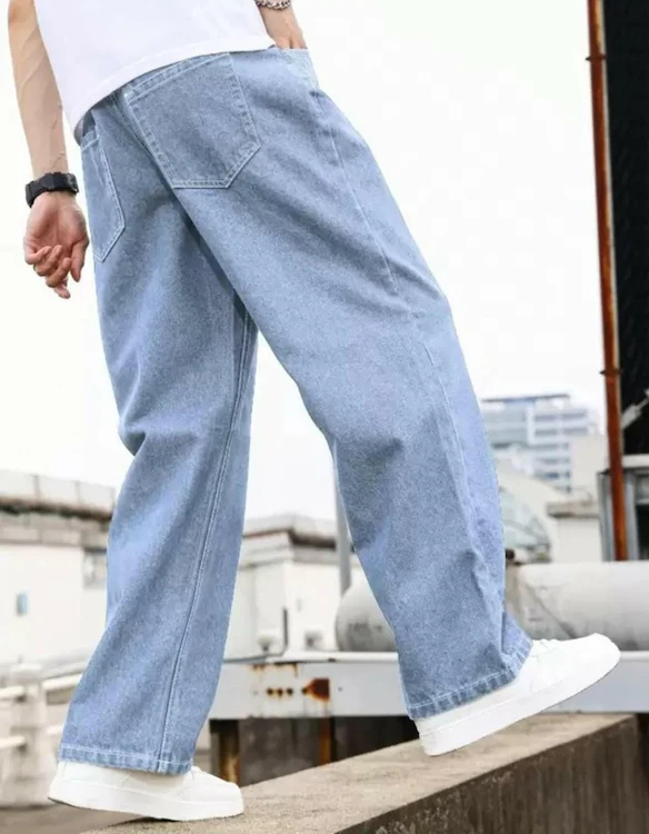 DENIM FIT -(Playfeel) Elevate Your Casual Style with Slate Light Blue Loose Fit Straight Fit Regular Baggy Fit Rigid Jeans. Looking to refresh your everyday wardrobe? Embrace the latest trend with our Slate Blue Baggy Fit Rigid Jeans from our newest collection. These jeans offer a relaxed fit around the waist and a loose fit down the legs, ensuring comfortable and unrestricted movement for all-day wear. Discover a perfect blend of style and comfort with these contemporary baggy fit jeans. Upgrade your casual fashion game today. Present A good quality jean for you. It will give you a classy and comfort look. These trendy jeans will be your go-to pair. For a relaxed hangout outfit, team these with a casual T-shirt. Straight Fit Regular fit jeans for boys and men’s. This jeans perfect for casual wear, Perfect for office boys and school college Men’s. Worn by people from all walks of life, and without an assigned age, they make boys, men’s and older people comfortable alike. Country of Origin:-India.