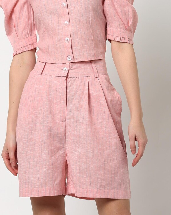 Striped Pleated Shorts