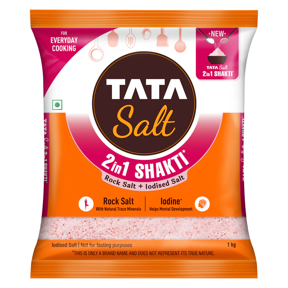 Tata Salt 2in1 Shakti has Iodine which helps in mental development & rock salt with natural trace minerals