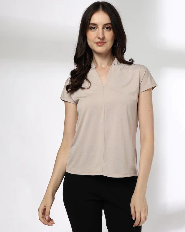 Women Relaxed Fit V-Neck Top